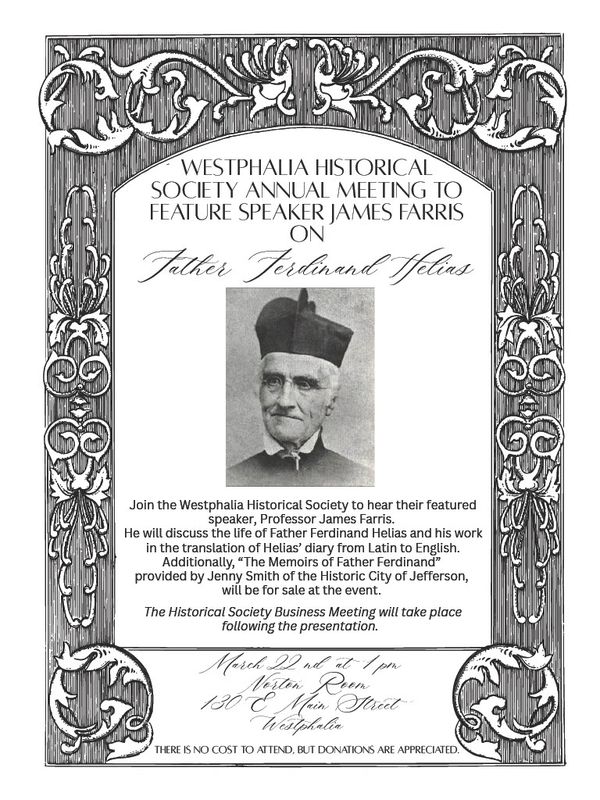 James Farris will speak on Father Ferdinand Helias (see flyer)